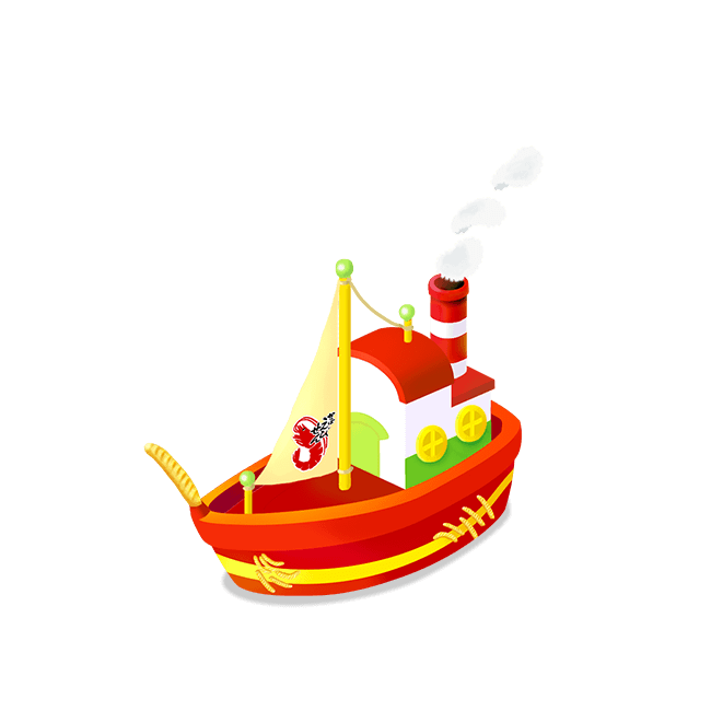 CalbeeFarmではレアな船アイテム。その名もかっぱえび船(せん)!