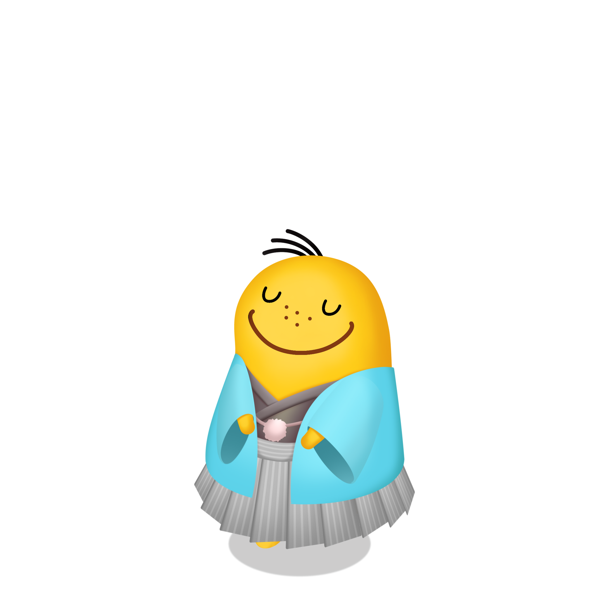 お正月限定デザインのポッタ。正装に身を包み厳かな雰囲気に!幕末の志士をも思わせるその姿に本人もちょっと誇らしげな表情。